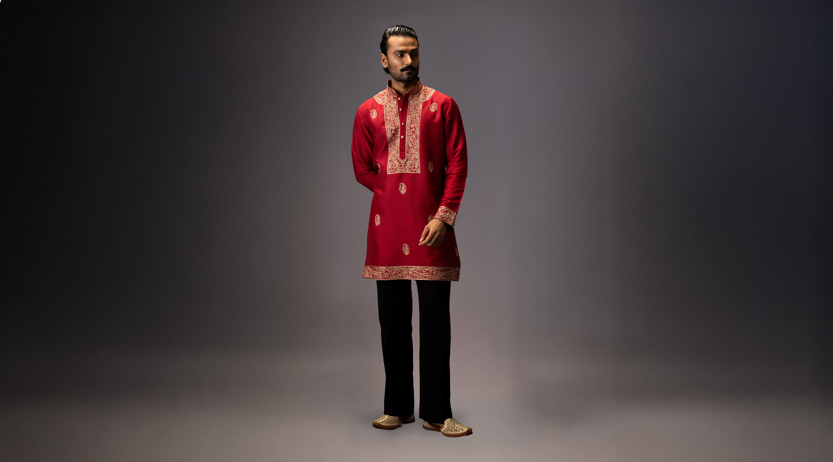 Disclaimer: The actual colour of the product may vary slightly from the image shown. Made-to-order products are non-returnable and non-exchangeable. Prices are provided solely for the kurta and jacket. Please note that any other accessories, jewelry and other items displayed are not part of this purchase.